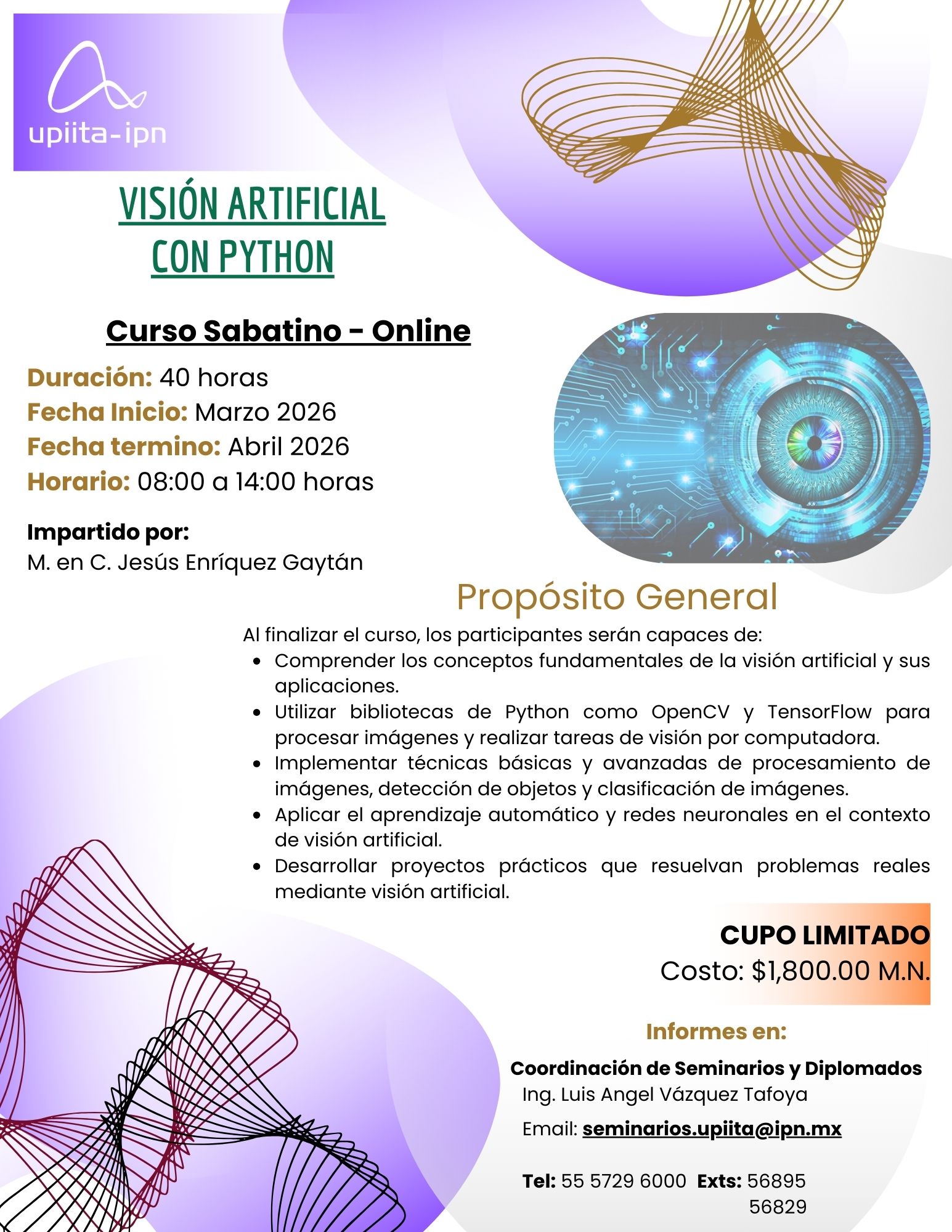 La fecha límite para apartar tu lugar es de 4 (cuatro) días antes de la fecha de inicio, siempre y cuando se cuente con disponibilidad. El servicio está sujeto a un cupo mínimo de 16 (dieciséis) alumnos para iniciar, en caso de que no se cubra el cupo mínimo el servicio será reprogramado.
